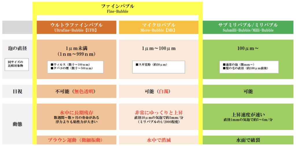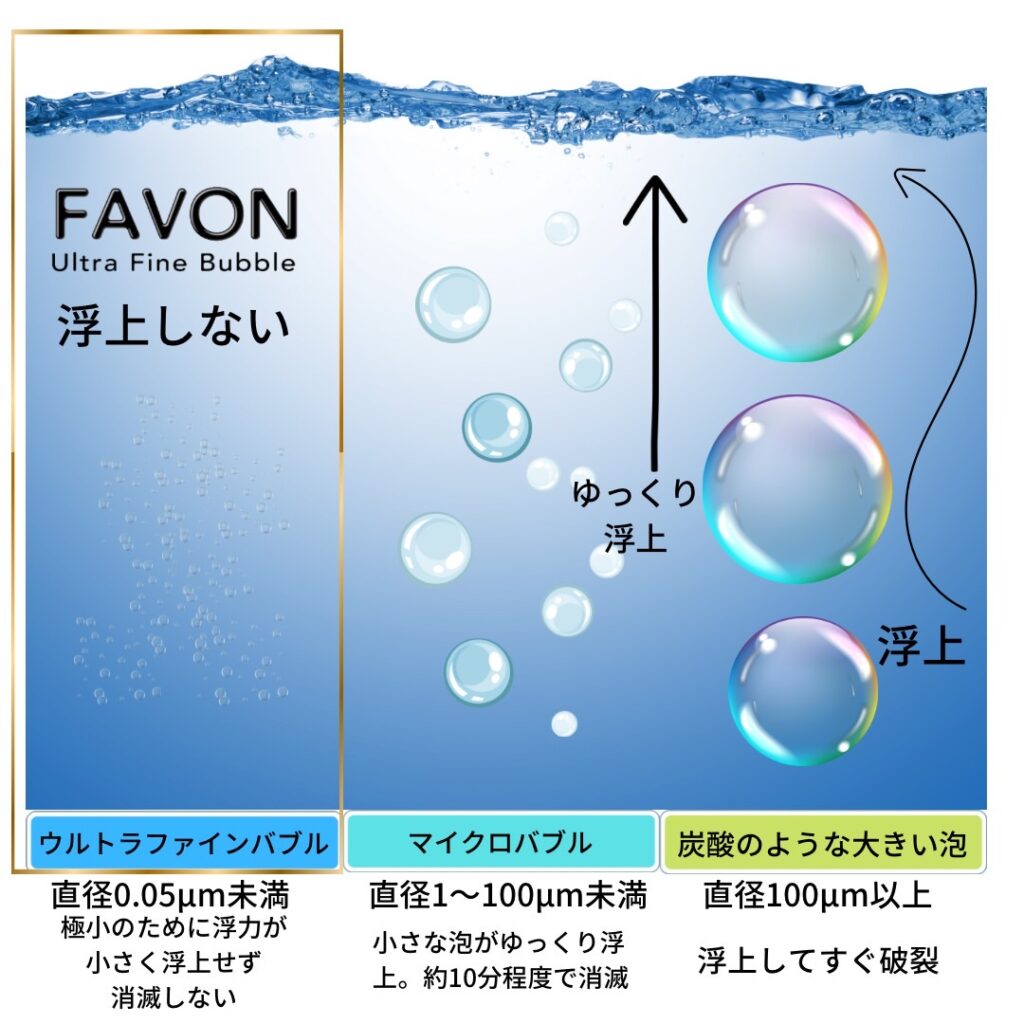 「ウルトラファインバブル」は、従来の気泡よりも小さなナノサイズの泡です。