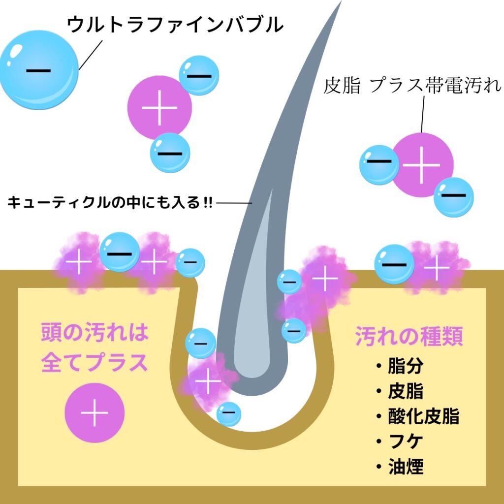 毛穴やキューティクルの隙間にまで気泡が入り込み、磁石のように汚れを吸着・除去。皮脂・薬剤残留・酸化皮質まで洗浄し、髪本来の美しさを引き出します。